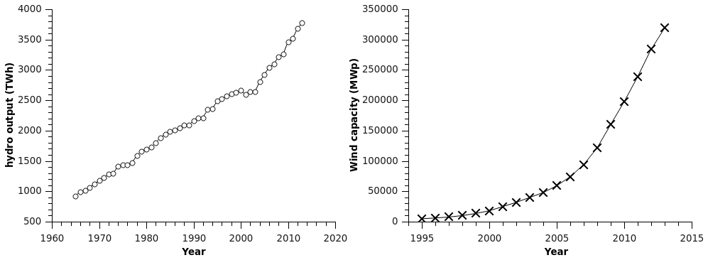 In my last look at the BP Statistical Review of World Energy data I will have a look at the traditional sources of energy (if you can call them that). These are hydro and coal but we will also have a look at a new kid on the block, wind.