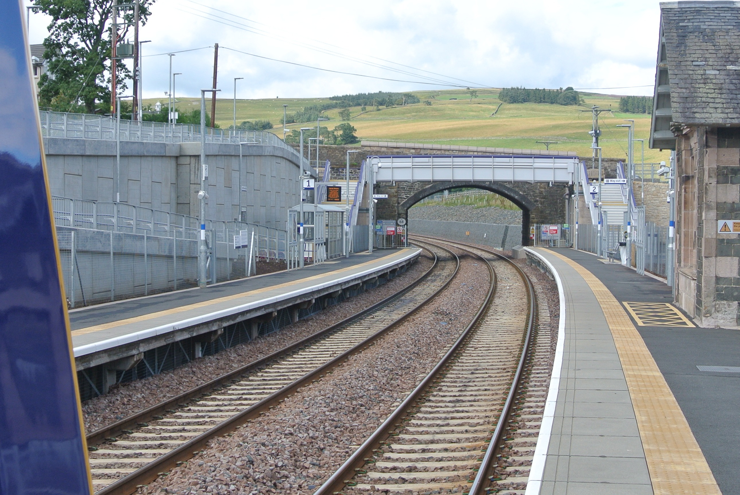 border railway passing placeMistakes have been made in the Borders railway reopening though.  It seems crazy not to have extended it a couple of miles further to Melrose, since by local standards its a major conurbation.  The main criticism made is that there is insufficient double track and more importantly that there is a problem in widening it to double track.  The problem is most acute at a number of new bridges where the line is single track but there is no space to put in a second track.  Neither is it electrified.  These short sighted cost savings will make it more difficult to reopen it as far as Carlisle, which would bring a whole heap of benefits.