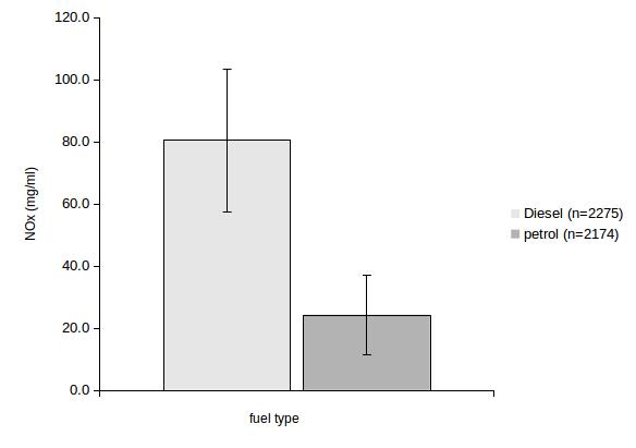 On the former there was some very interesting articles on the radio this morning. The Mayor of London Sadiq Khan is to introduce a congestion charge for diesel cars and independent emissions testing. The most revealing interview was with the government’s former chief scientific advisor Sir David King who advised government 20 years ago when the decision to encourage diesels was made. He said the decision was made to go far diesels for climate change reasons knowing that there was a problem over particulates but trusting the car manufacturers who promised to solve it. The problem was they have not. The graph above shows the depth of the problem on NOx. The data is official data for current models on sale in the UK (source DFT). The difference is extremely highly significant for over 2000 different models and shows that petrol cars produce significantly less NOx. The error bars show the standard deviations of the data. There is no doubt we need to change to petrol/electric/walking/cycling as fast as possible.