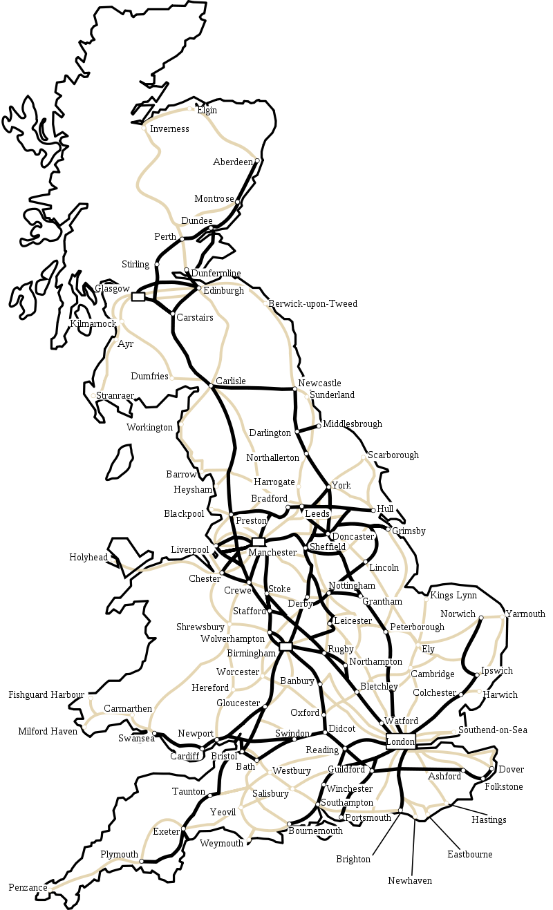 800px-Beeching2.svgOne of the most exciting developments in transport is reopening railway lines.  The Beeching cuts that I have blogged on before were planned to cut most of the UK’s rail capacity.  Beeching (an engineer) in the end managed to close about a third of our capacity.  This map shows what the route network would have looked like (black).  Pretty much nothing in Wales, not much in Scotland and England only main trunk routes.